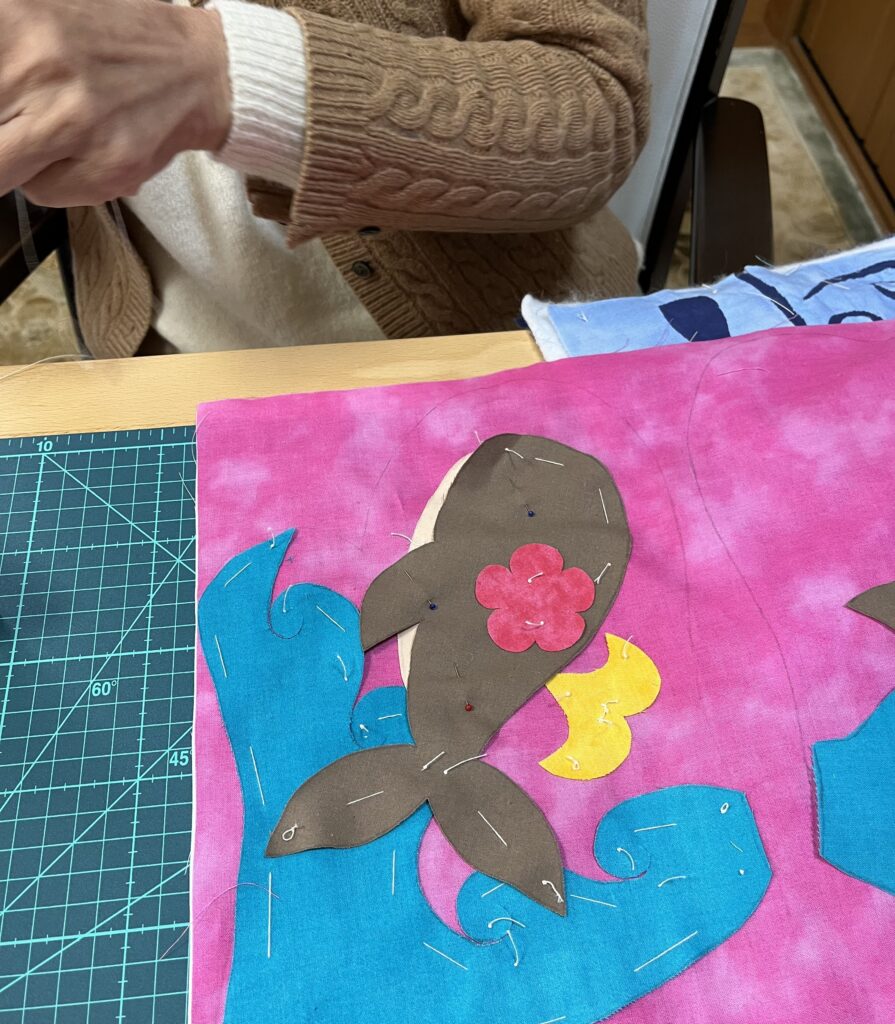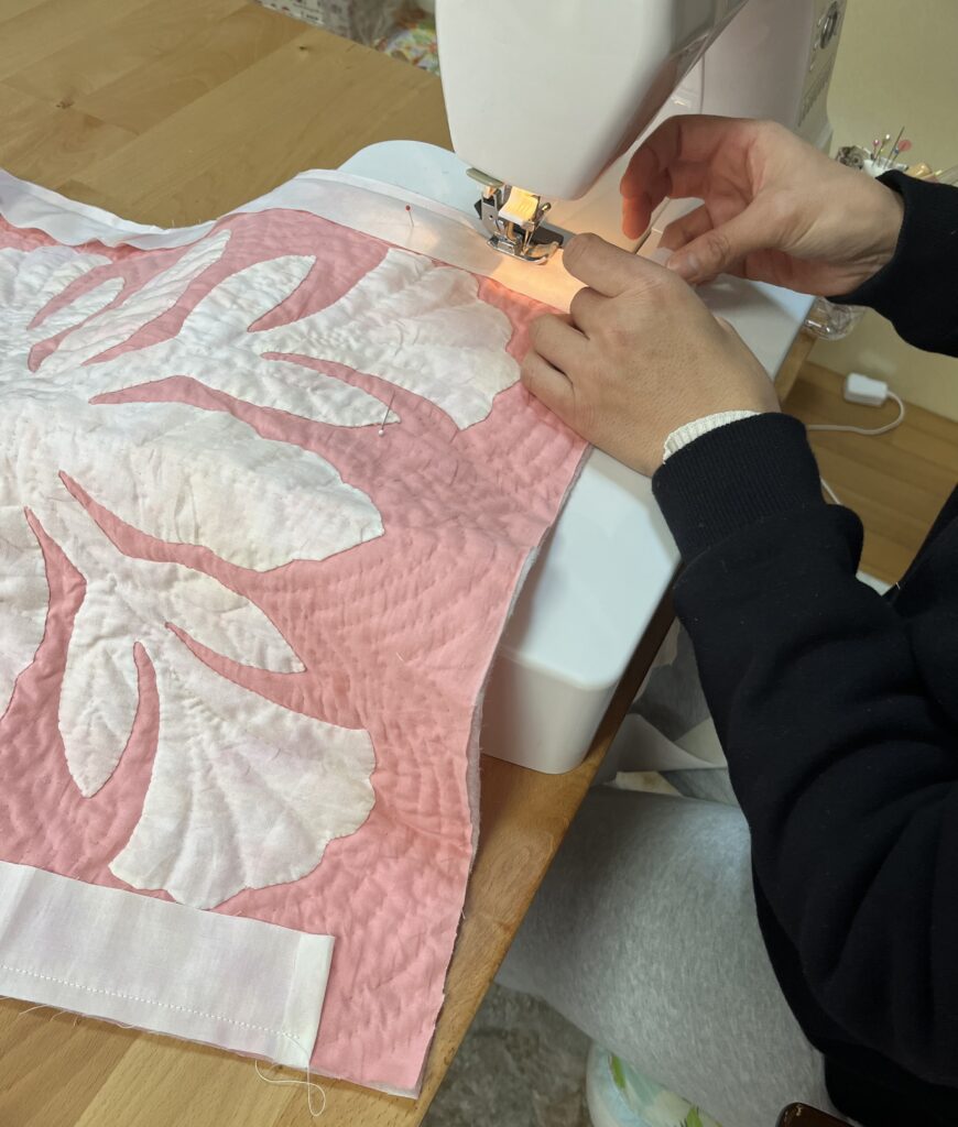 毎月レッスンで、生徒様のきれいに縫われたアップリケとキルトラインが施された製作途中の作品を見させて頂くと、日々お忙しい中ハワイアンキルトに取り組まれていてこちらも頑張らないと!としみじみ思います。